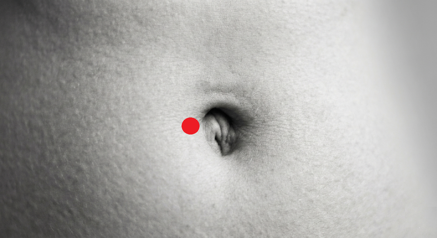 📍 Location: In this image, you’ll see a red dot on the right side of the belly button. You want to choose whichever side is opposite to where you feel pain. If you have sciatica on your left, press on your right side of the belly button, and vice versa. This is a stronger point than the last, and tends to provide relief for sciatica, even in chronic conditions.